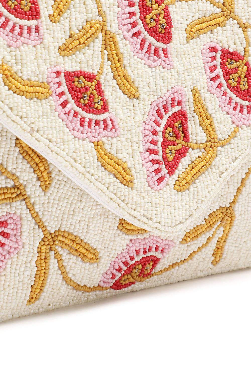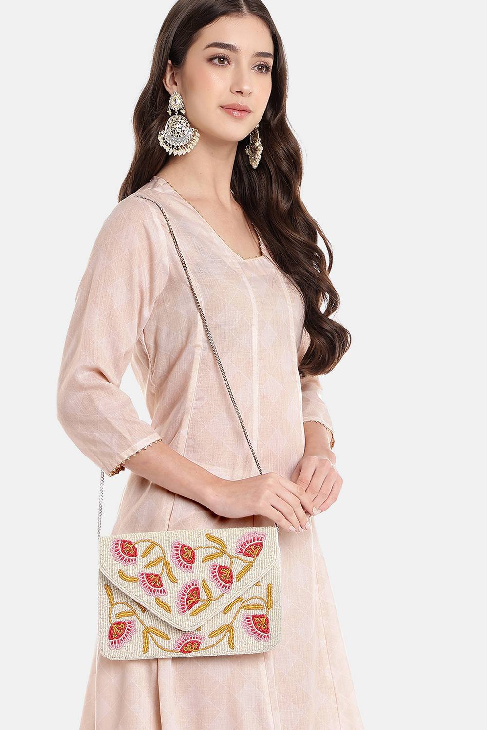Cream Floral Vine Beaded Canvas Sling Bag