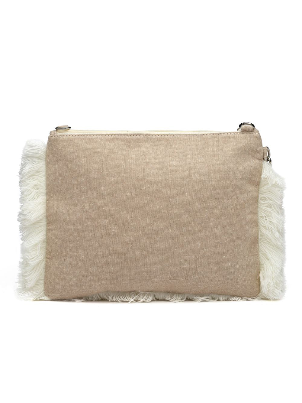 Kooky Beige And White Boohoo Quirky Embroidered Cotton Sling Bag