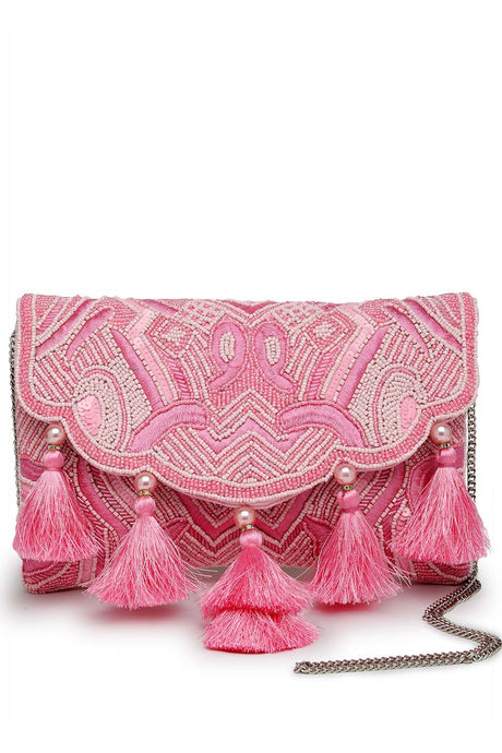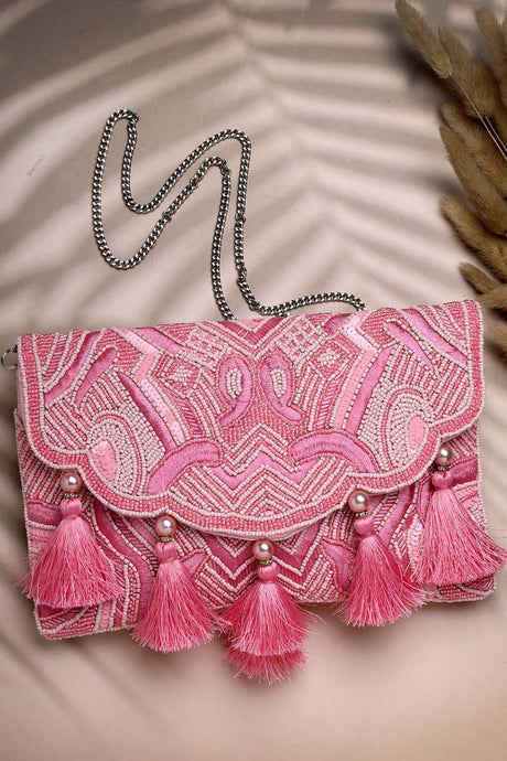 Yellow Palm Leaf Embroidered Satin Sling Bag