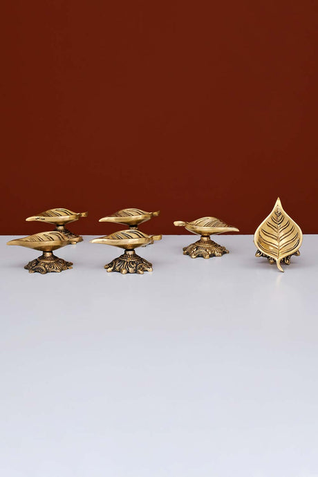 Brass Leaf Shaped Small Diya Oil Lamp Deepak (Set Of 6)