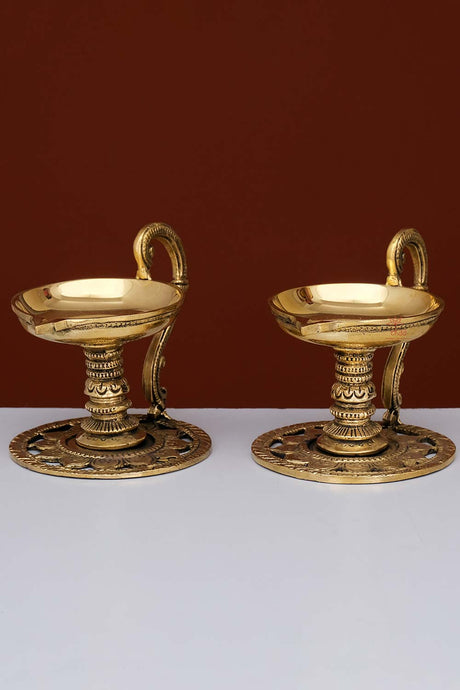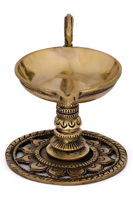 Ethnic Carved Brass Diya For Pooja Room And Temple