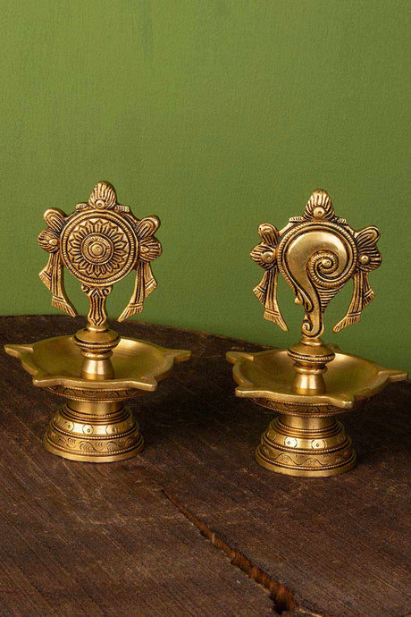 Brass Shank-Chakra Oil Diya With 5 Wicks