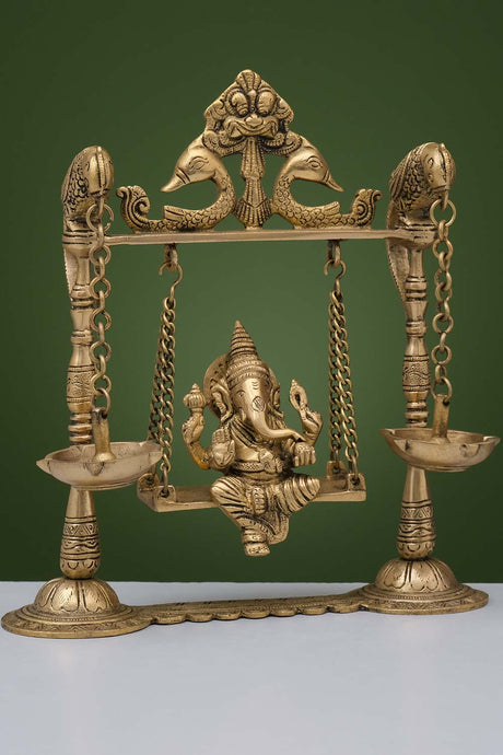 Brass Radha Krishna Swing Parrot With Oil Lamp