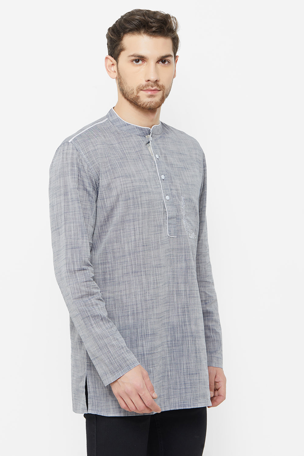 Grey thin cotton slub with pocket embroisery designer short kurta