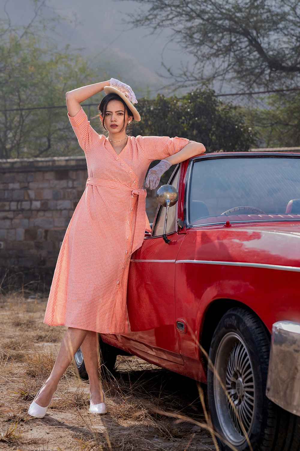 Orange Checkerd Print Pure Cotton Dress