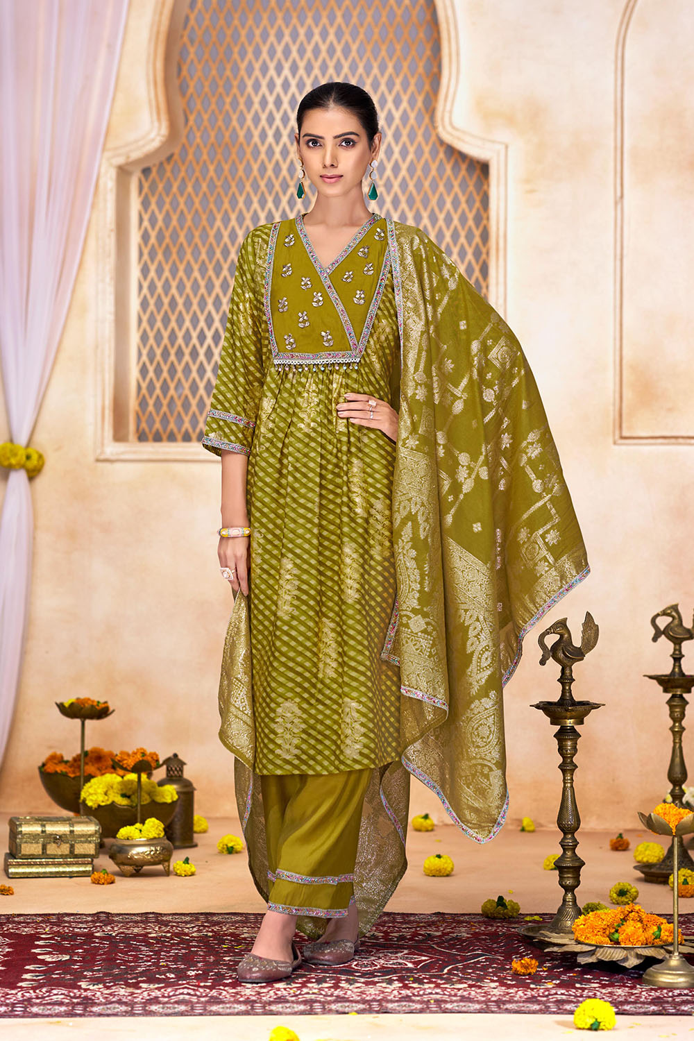 Green Printed Modal Chanderi Straight Cut Suit Set