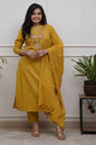 Mustard Floral Embroidered Cotton Straight Cut Suits