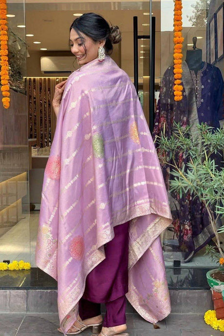 Violet Embroidered Silk Straight Cut Suits