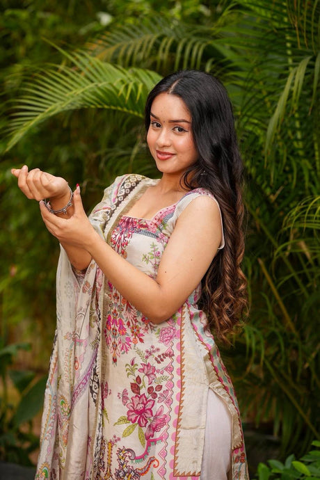 Regular price $1,080.00 USDUnit price /UnavailableCream Floral Printed Rayon Straight Cut Suit Set
