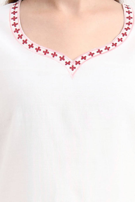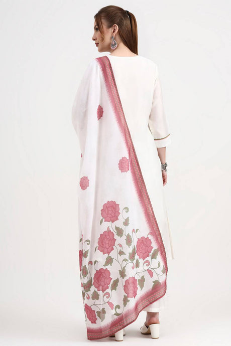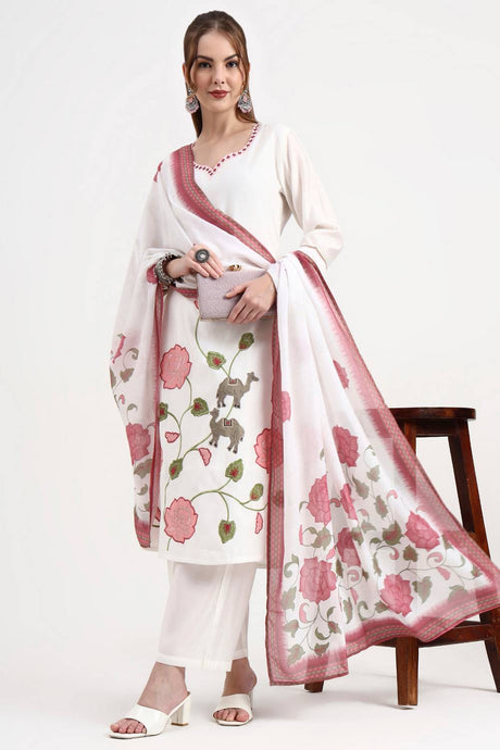 White Embroidered Silk Straight Cut Suit Set