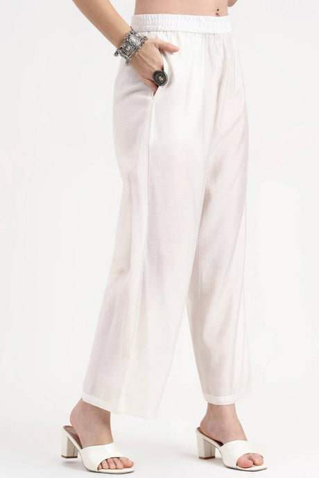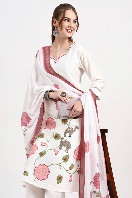 Cream Embroidered Viscose Straight Cut Suit Set