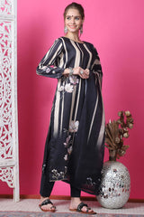 The Black Cotton Digital Printed Kurti Pant Set exudes elegance with its intricate digital prints on soft cotton fabric. Ideal for casual outings or festive gatherings, it blends traditional charm with contemporary style, offering comfort and grace in every wear.