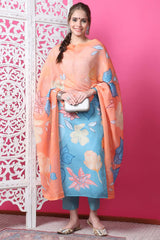 Sky Blue Cotton Digital Printed Kurti Pant Set