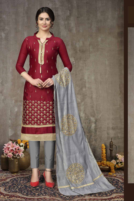 Blended Cotton Embroidery Suit Set In Sky Blue