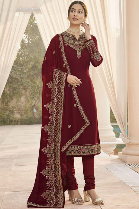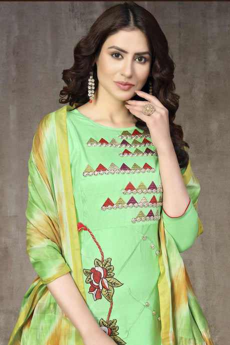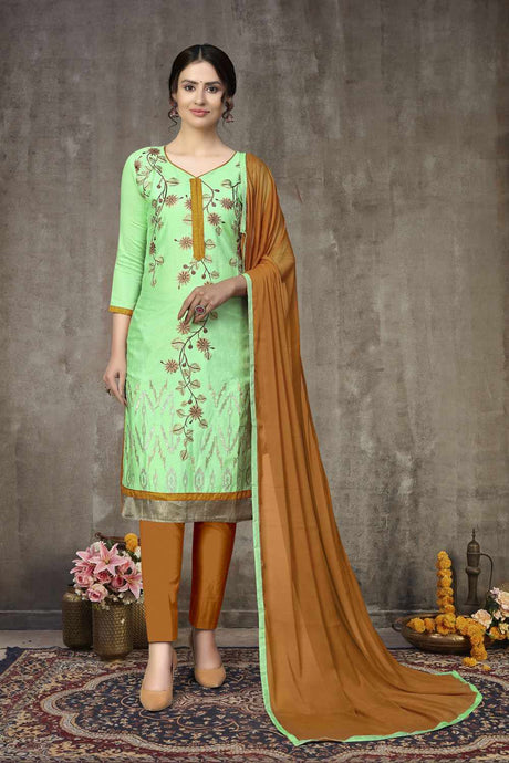 Faux Georgette Embroidery Suit Set In Mustard Yellow