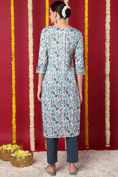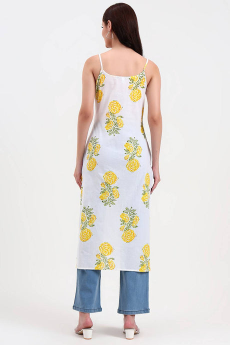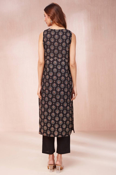 Black Ethnic Motifs Printed Cotton Straight Kurti