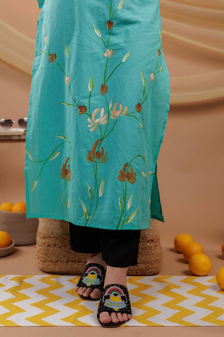Blue Hand Embroidery Art Silk Jacket Styles Kurti