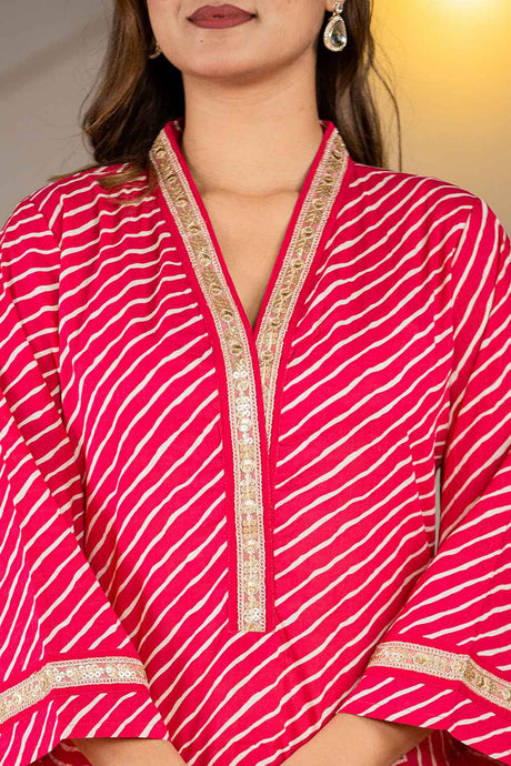 Pink Leheriya Embroidered Pure Cotton Kurti