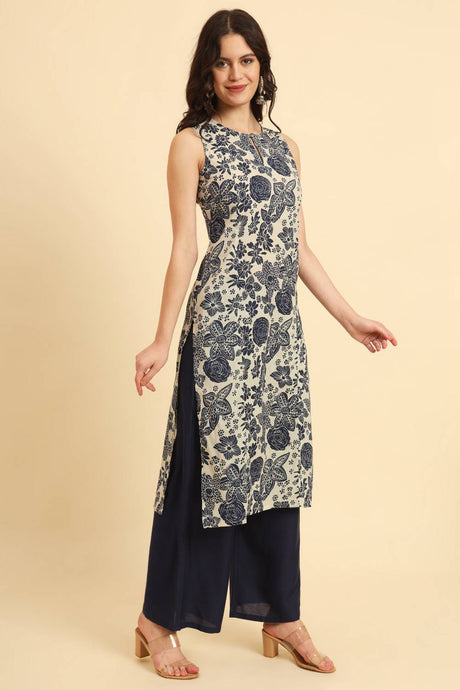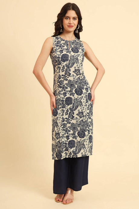 Beige Embroidered Net Stitched Palazzo Kurti With Dupatta