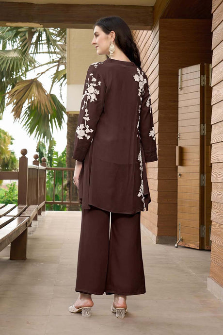 Brown Embroidered Silk Stitched Palazzo Kurti With Dupatta