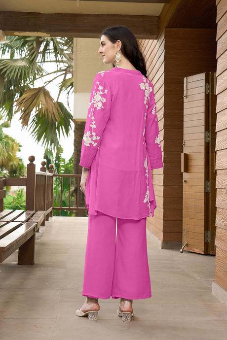 Pink Hand Embroidery Art Silk Jacket Styles Kurti