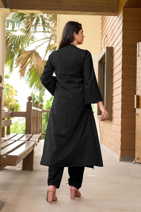 Black Hand Embroidery Art Silk Jacket Styles Kurti