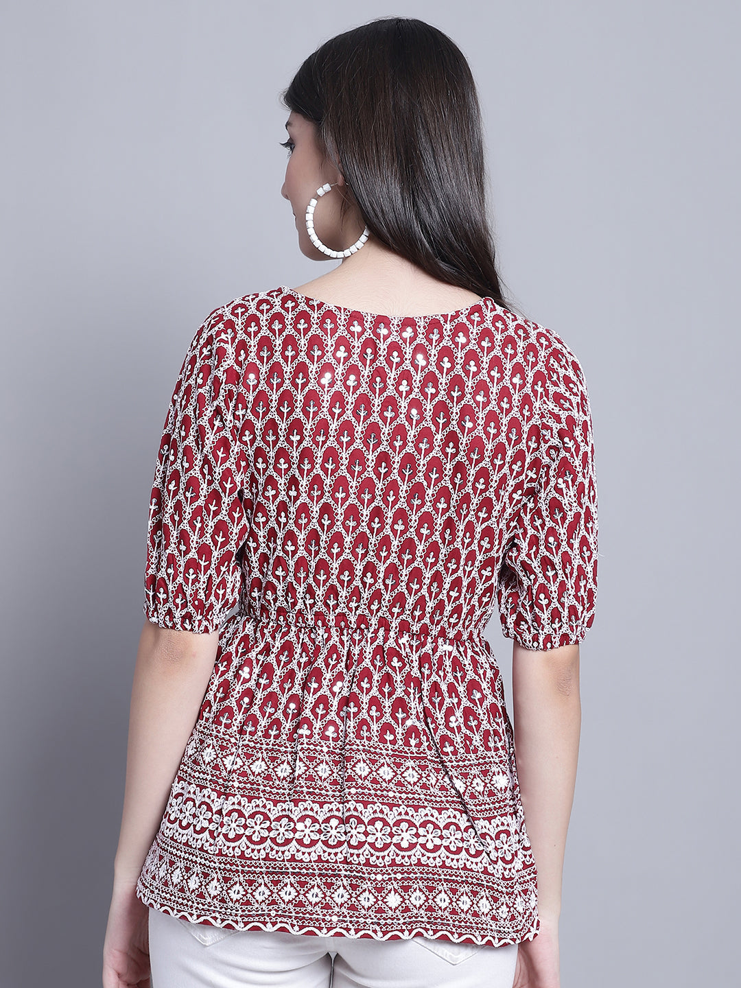 Women's Maroon Chikankari And Sequins Work Empire Top