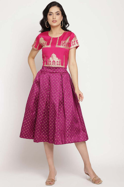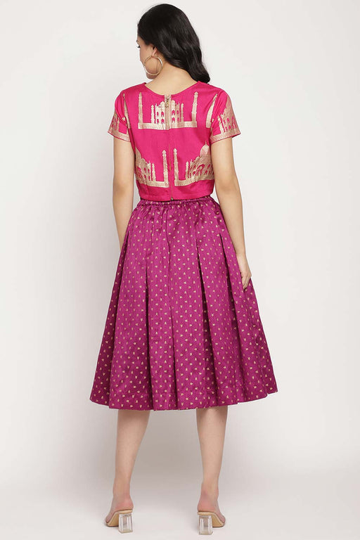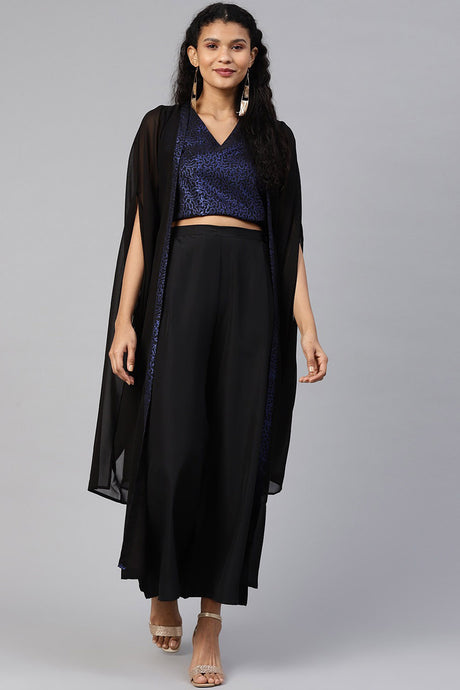 Crepe Foil Print Skirt Set In Black