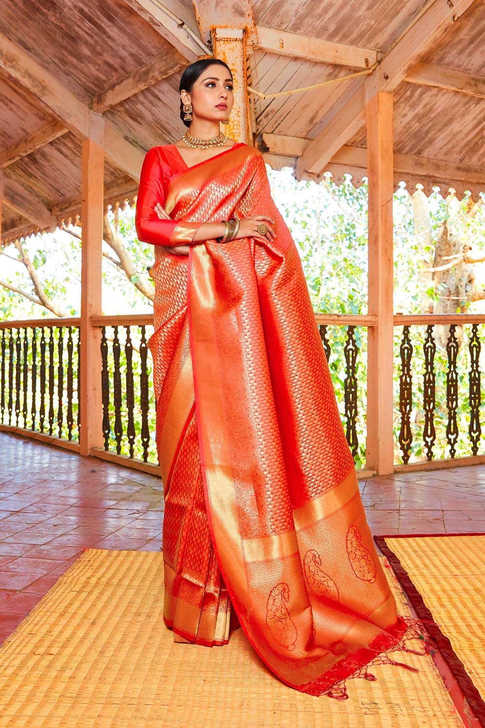 The Silk Red Woven Handloom Saree is a vibrant and luxurious garment that combines the richness of red silk with intricate handloom weaving techniques.