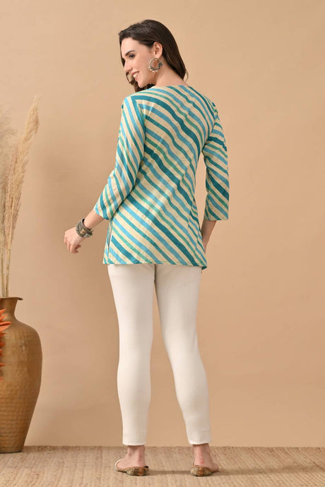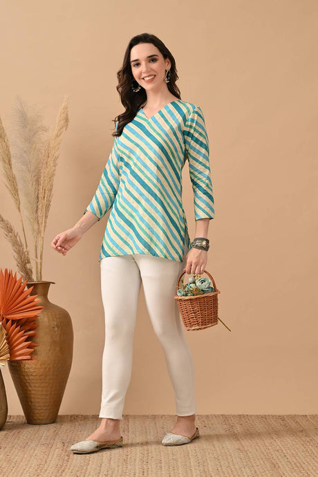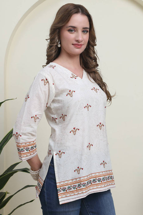 Navy Blue Floral Printed Cotton Tops & Tunics