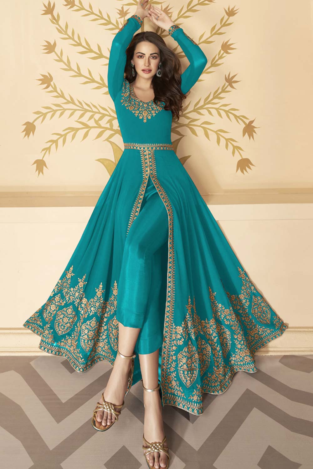 Sky Blue Georgette Resham Embroidery Pant Suit Set