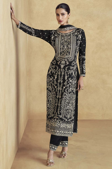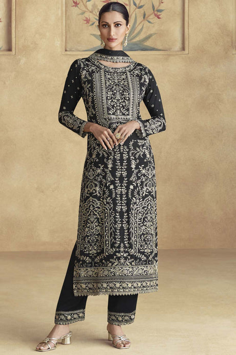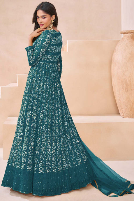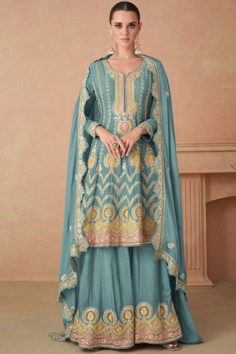 Blue Sequin with Embroidered Art Silk Pakistani Suit Set