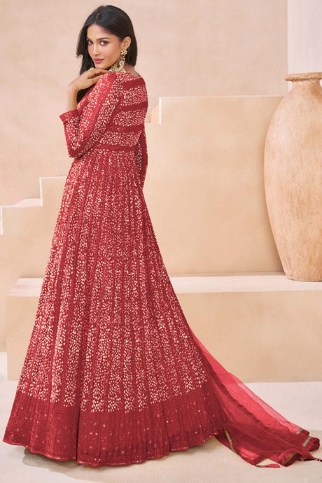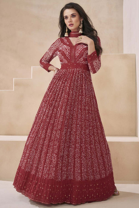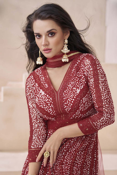 Pink Sequin with Embroidered Georgette Gown