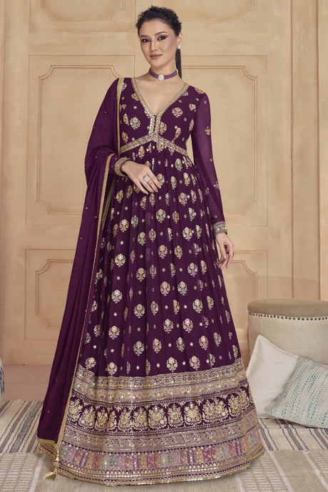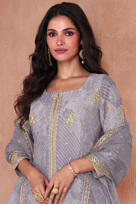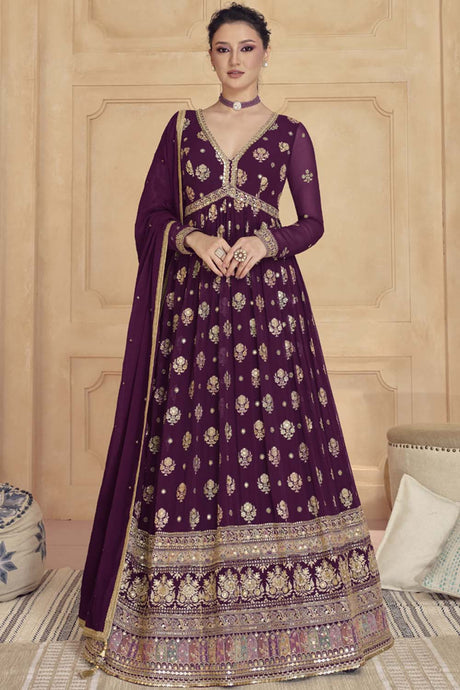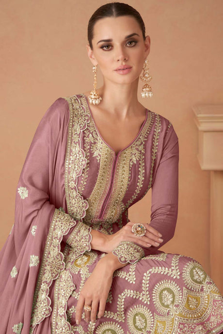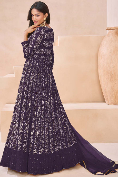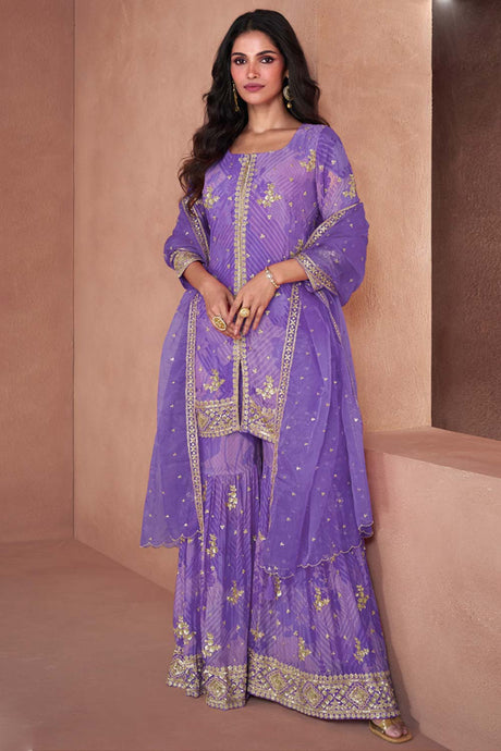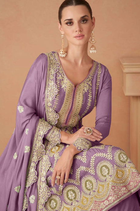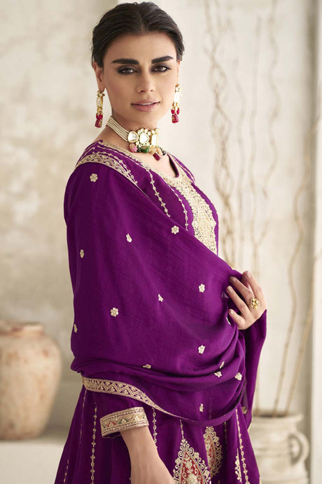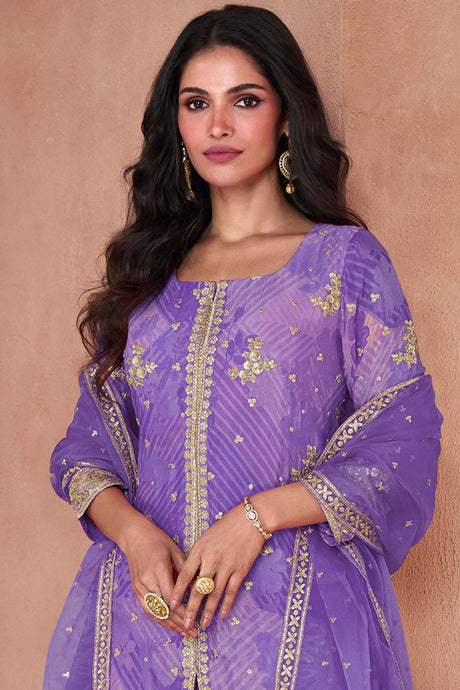 Violet Sequin with Embroidered Art Silk Pakistani Suit Set