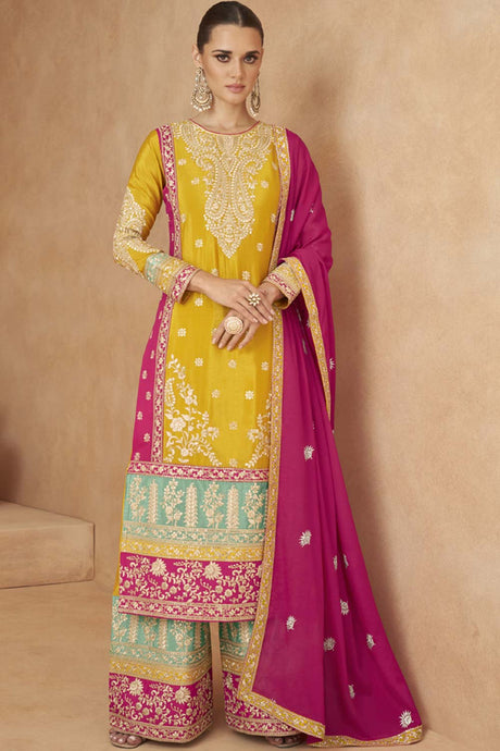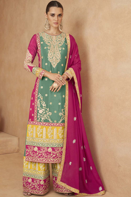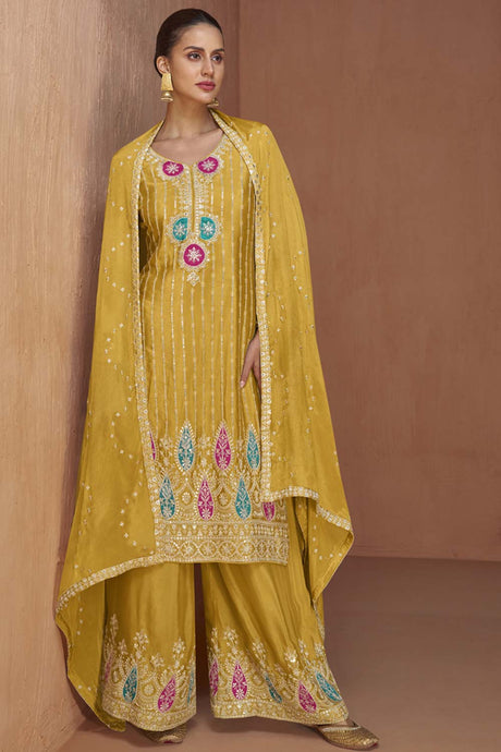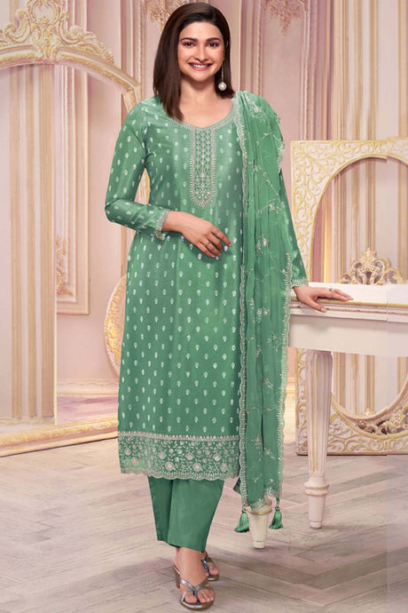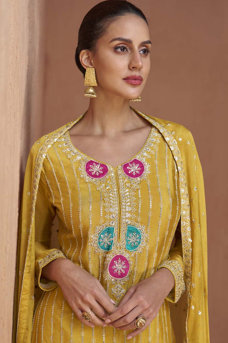 Mehendi Sequin with Embroidered Art Silk Patiala Suit Set