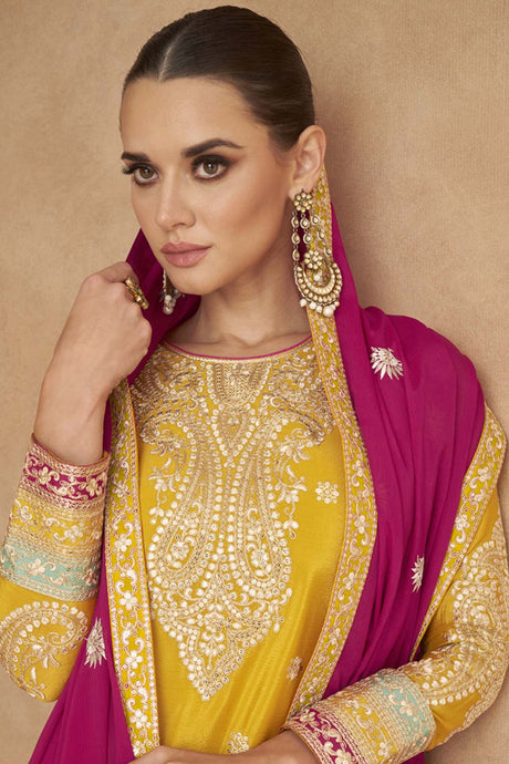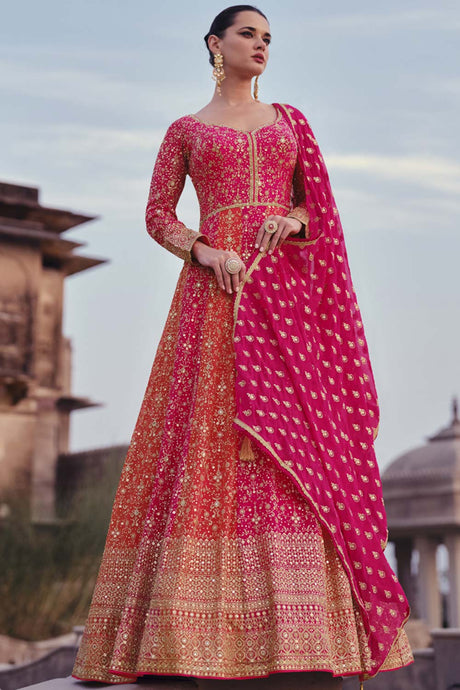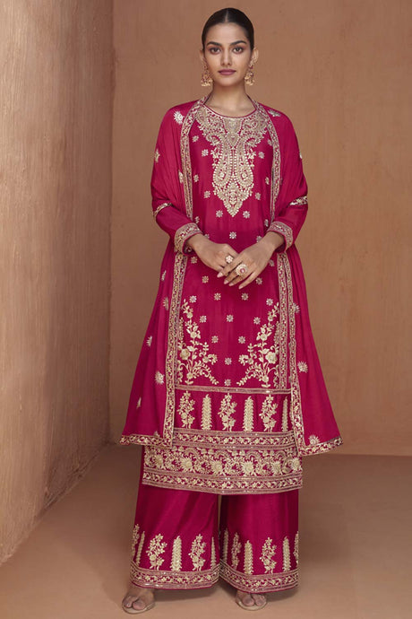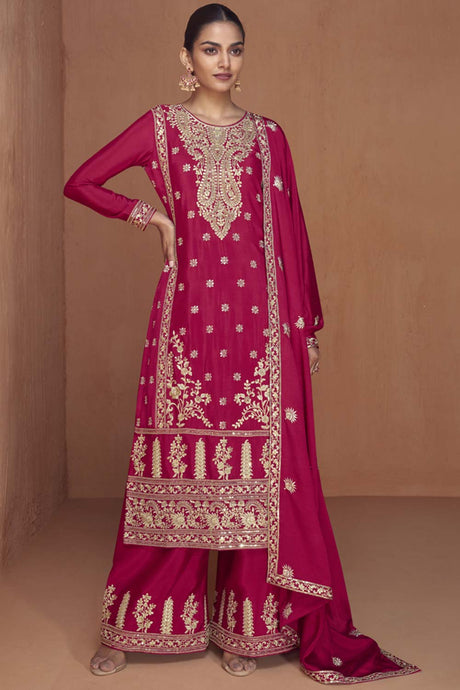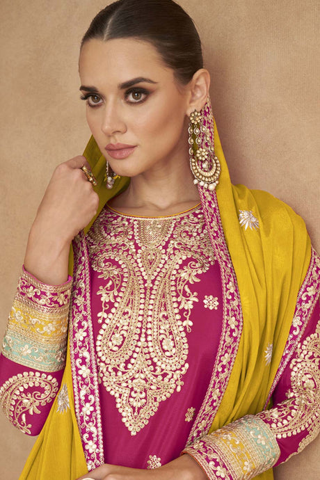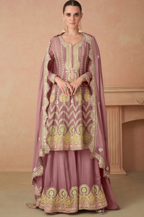 Pink Sequin with Embroidered Art Silk Pakistani Suit Set