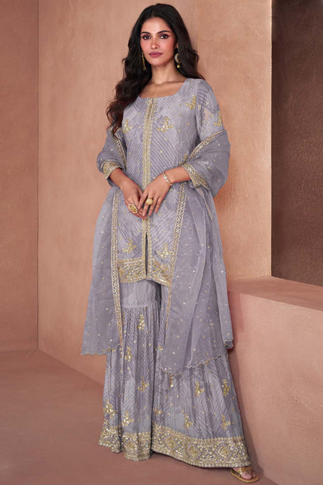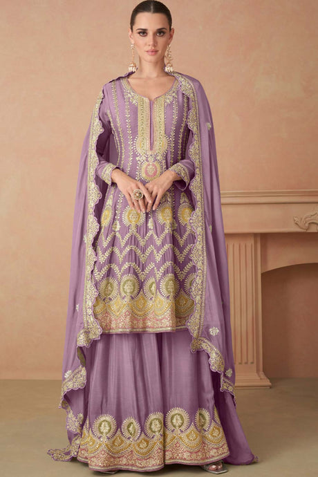 Lavender Sequin with Embroidered Art Silk Patiala Suit Set