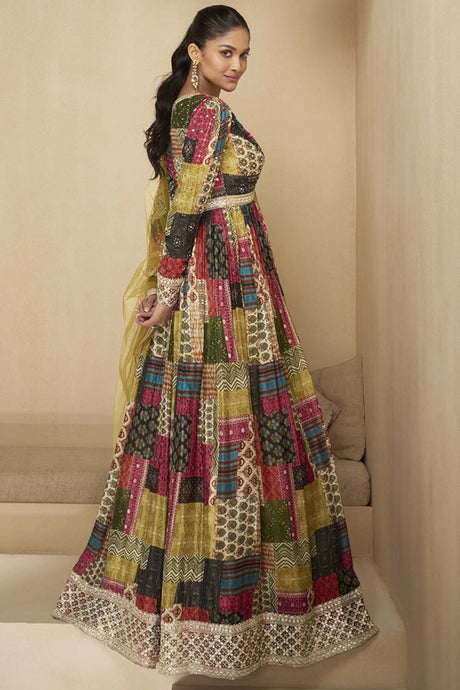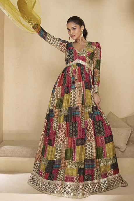 Multi Color Floral Embroidered Silk Lehenga