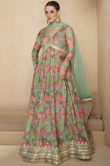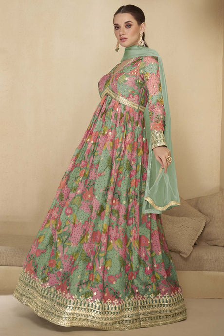 Green Sequin with Embroidered Georgette Gown