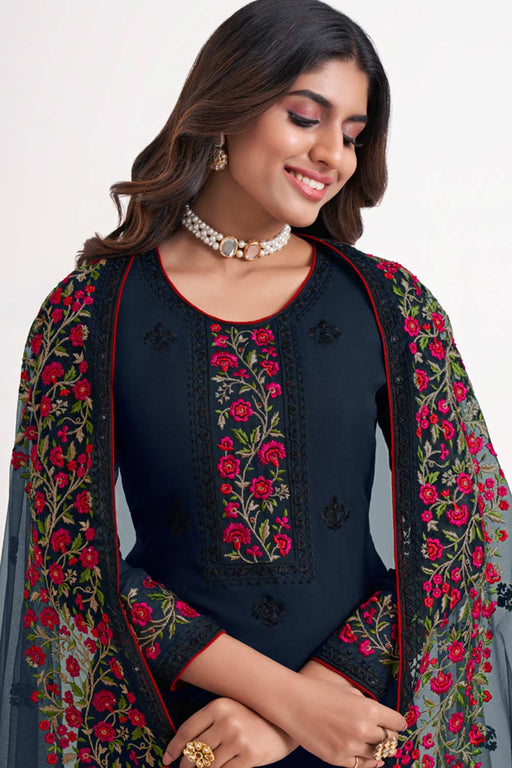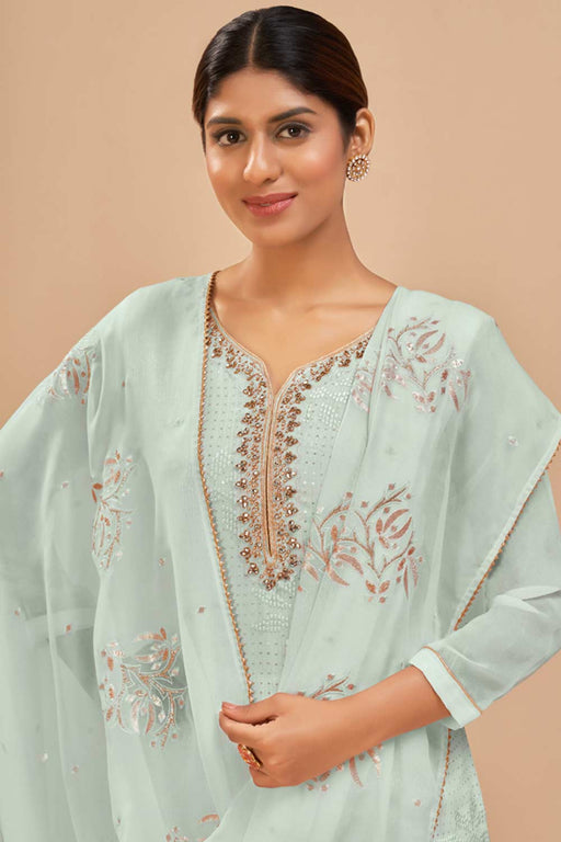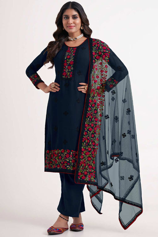 Sky Blue Georgette Embroidered Straight Kurta Suits Set