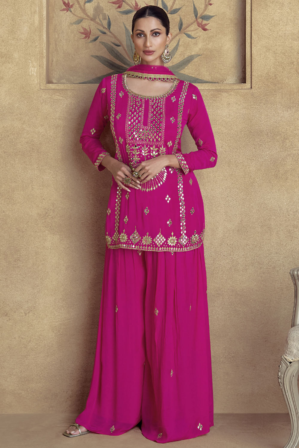 Pink Sequin with Embroidered Silk Sharara Suit Set