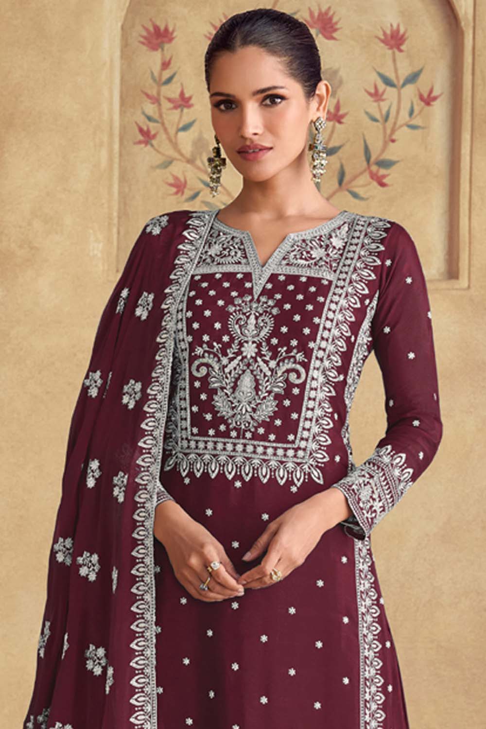 Step into effortless style with our Palazzo Suit Set crafted for the modern woman who cherishes tradition. Made from soft Georgette it keeps you comfortable all day long. The Embroidered design lends a touch of sophistication to your outfit. Perfect for Weddingwear,Reception,Festivewear,Sangeet this salwar suit is a must-have for versatile styling options. Style it with minimalistic accessories and flats for a casual look or jewelry and heels for special events