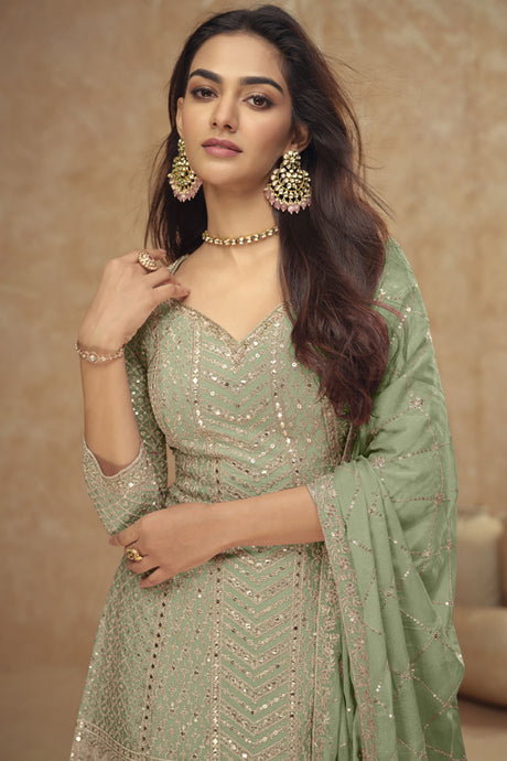 Light Green Sequin with Embroidered Silk Sharara Suit Set