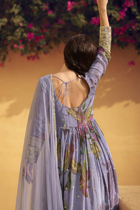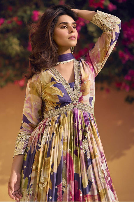 Purple Floral Embroidered Chiffon Pakistani Suit Set