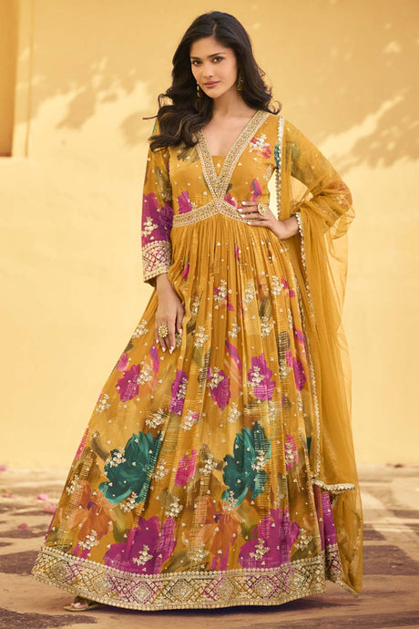 Mustard Sequin with Embroidered Silk Sharara Suit Set