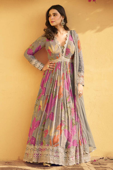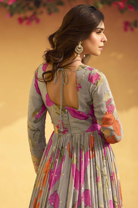 Grey Sequin with Embroidered Georgette Anarkali Suit Set
