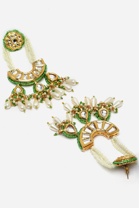 Green And Gold Gold-Plated Kundan And Pearls Chandbali Earrings