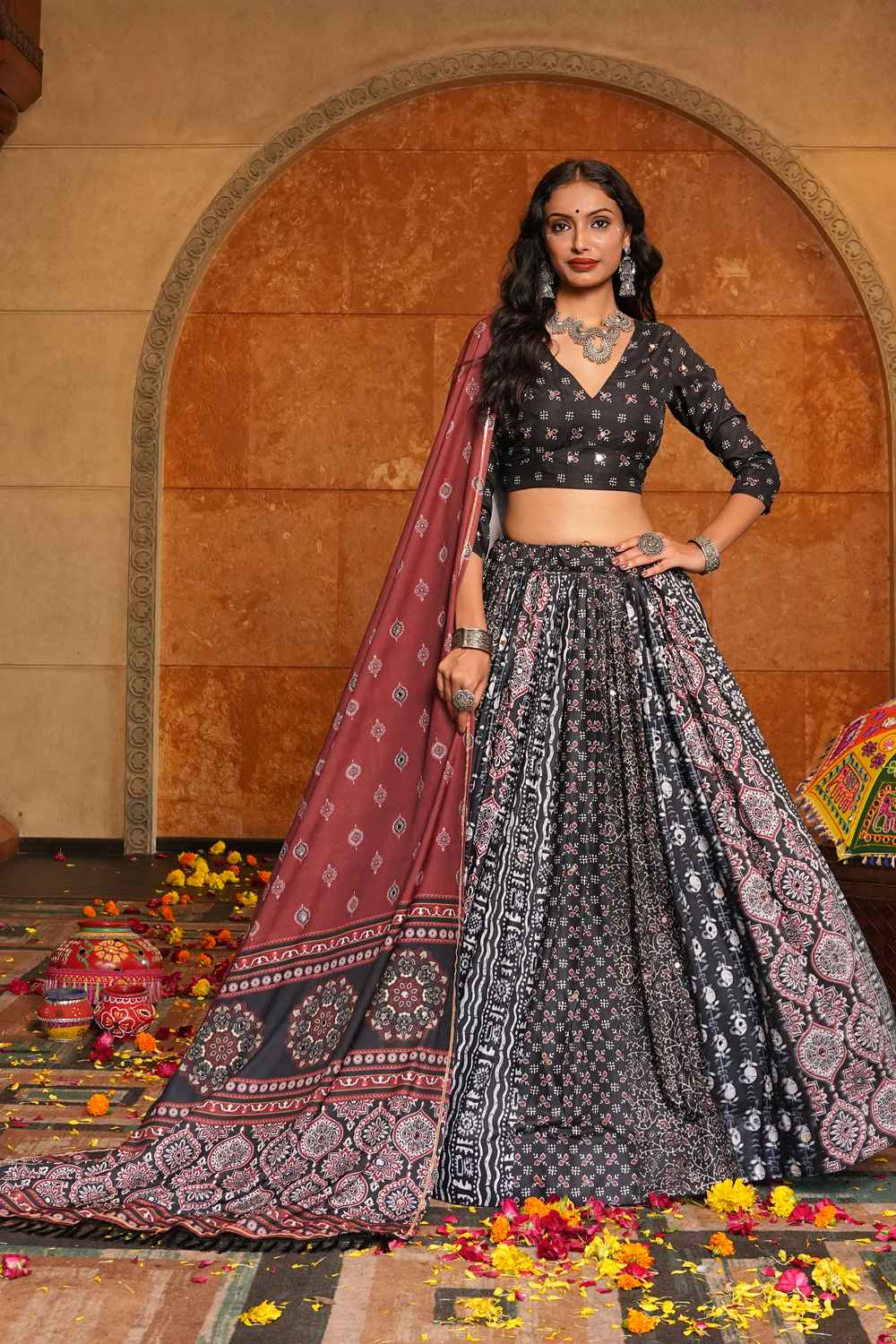 Step into the spotlight with our Lehenga, a dazzling creation designed to make your special moments unforgettable. Crafted from premium Crepe this lehenga offers a perfect combination of elegance and ease, keeping you graceful all day long. The exquisite Printed makes this lehenga a masterpiece of traditional craftsmanship. Whether it’s Festive or a grand celebration, this lehenga is the perfect choice to make a statement. Pair it with an ornate choker, a matching dupatta, and embellished stilettos to complete the regal look. Add a sleek bun or cascading curls for added glamour. Make every moment magical with the timeless allure of Lehenga
