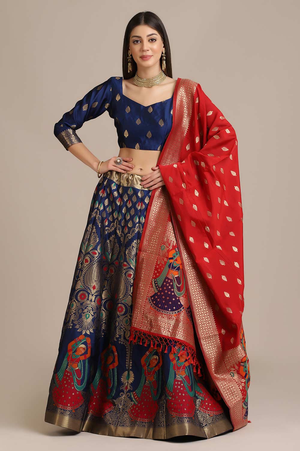 color-blue, fabric-jacquard, work-zari work, brand-name-krupali-savani,occasion-festivewear, occasion-wedding-guest, womenswear,ideal-for-women, lehengas,
