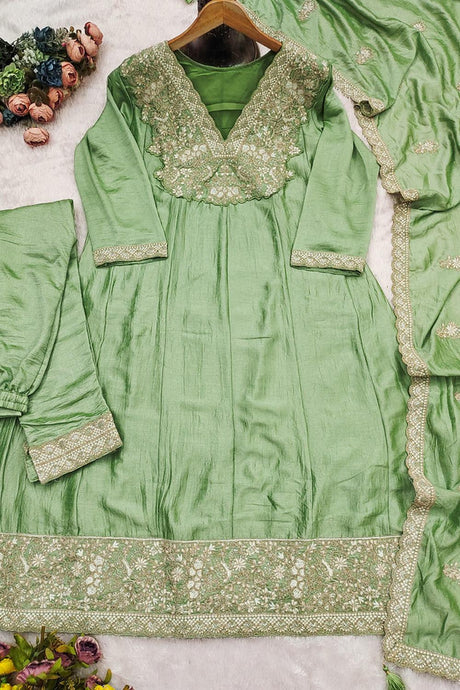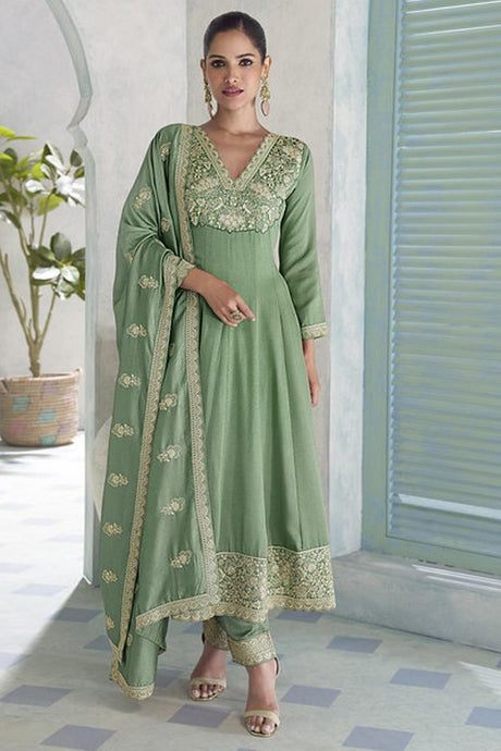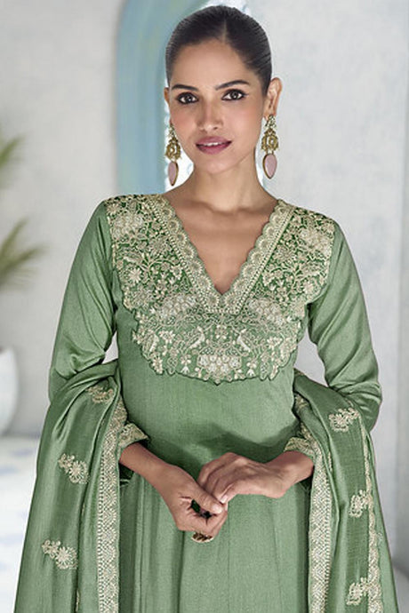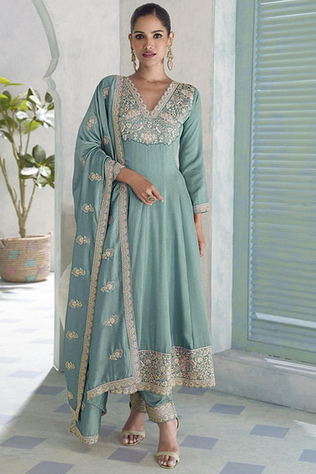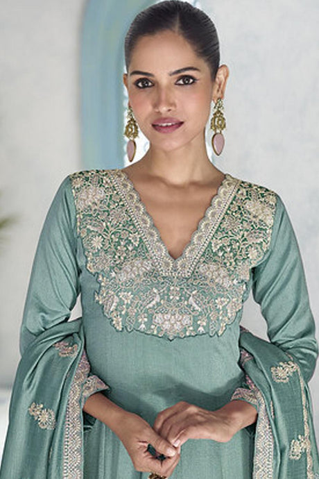 Sea Green Sequin with Embroidered Chinon Palazzo Suits